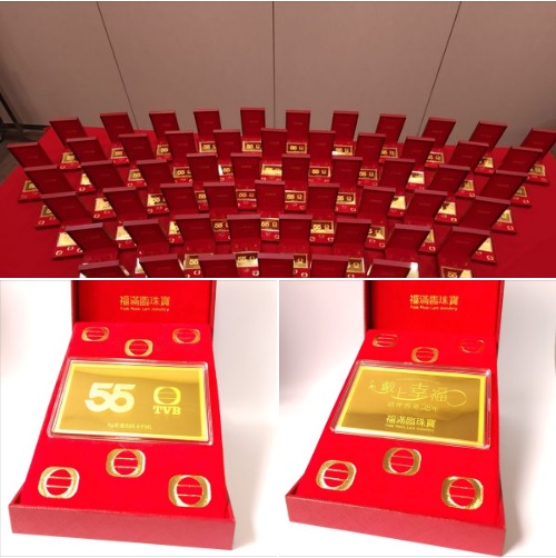 福滿臨珠寶 贊助 TVB 55 週年,送出55面 999.9千足純金金牌, 將於台慶當晚抽獎送出