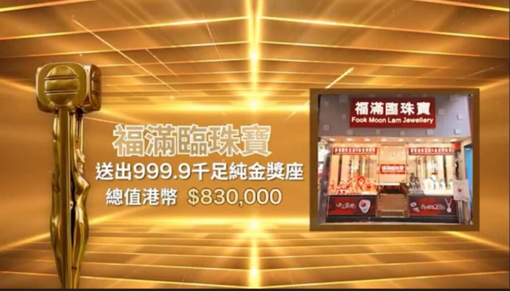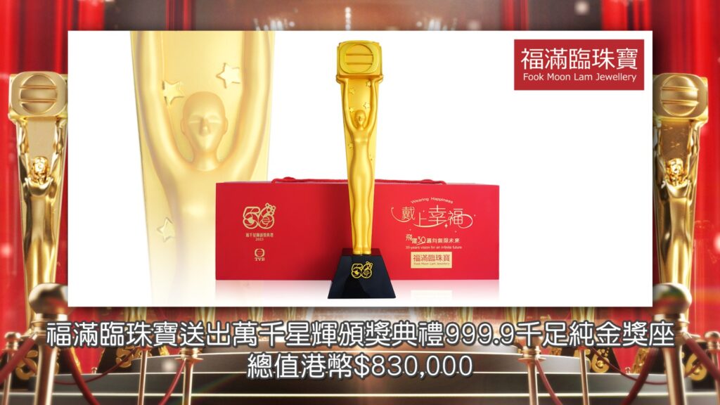 福滿臨珠寶集團贊助TVB2022萬千星輝頒獎典禮999.9千足純金獎座總值港幣$83萬